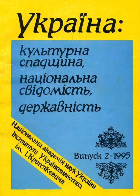Ukraine: Cultural Heritage, National Identity, Statehood. – Volume 2 / National Academy of Sciences of Ukraine, Ivan Krypiakevych Institute of Ukrainian Studies. Edited by Iaroslav Isaievych, Vasyl Horyn and others - Lviv, 1995. 228 p.