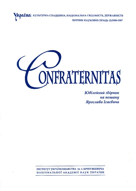 Confraternitas. Festschrift in Honor of Iaroslav Isaievych / Edited by Mykola Krykun with the assistance of Ostap Sereda. Lviv, 2006–2007 (Ukraine: Cultural Heritage, National Identity, Statehood. Vol. 15 / Ivan Krypiakevych Institute of Ukrainian Studies of the National Academy of Sciences of Ukraine). 940 p., 16 p. ill.
