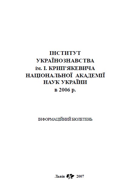 I. Krypiakevych Institute of Ukrainian Studies, National Academy of Sciences of Ukraine. 2006 Annual Review. – Lviv, 2007. – 176 p.