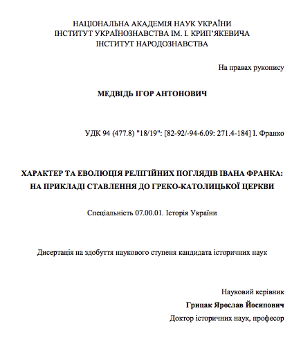 Науковий консультант: доктор історичних наук, професор Михальський І. С.