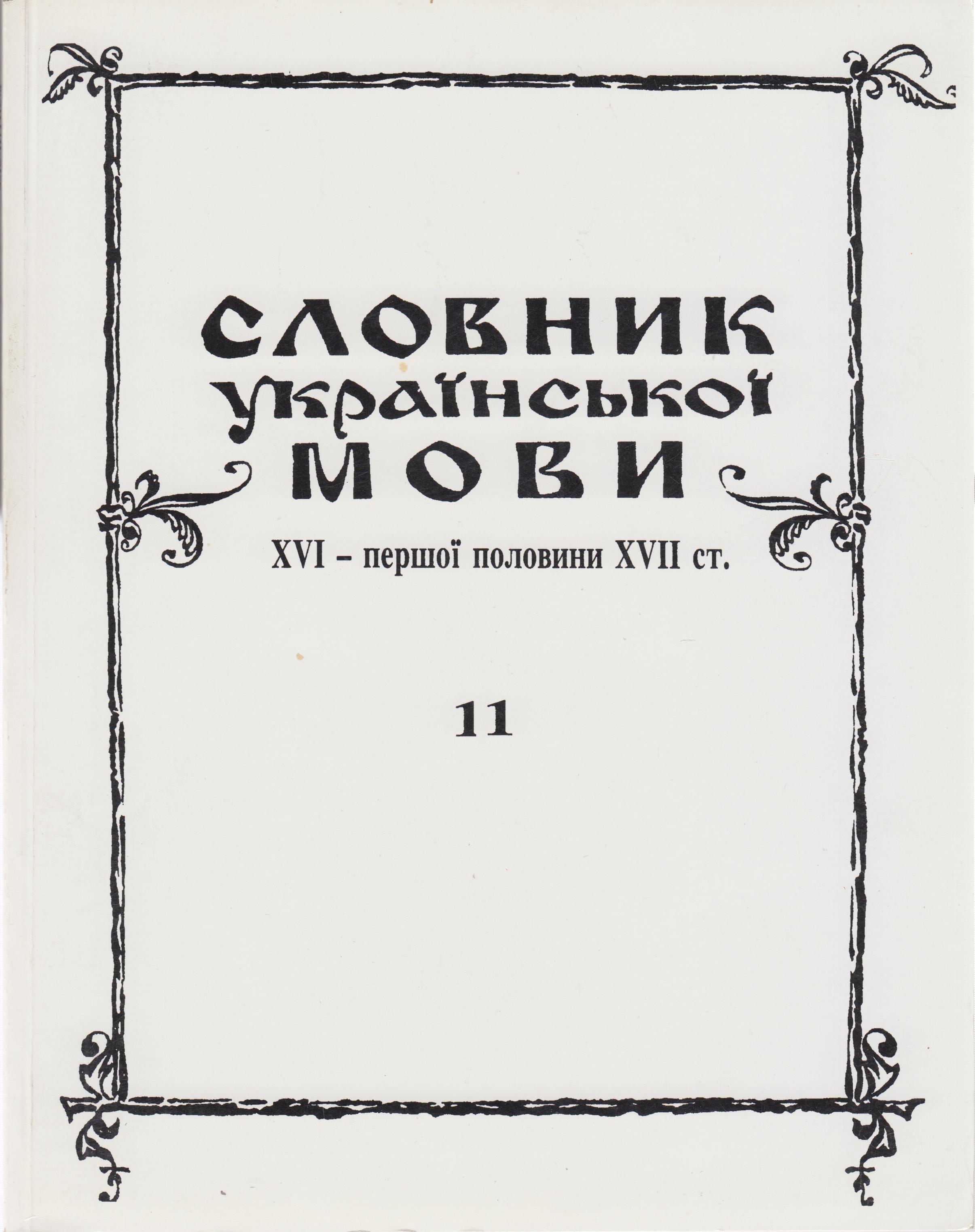 Словник української мови ХVІ – першої половини ХVІІ ст. / відп. ред. Д. Гринчишин; Інститут українознавства ім. І. Крип’якевича НАН України. Львів, 2004. Вип. 11 (затраченє – злечитисѧ). 255 с.