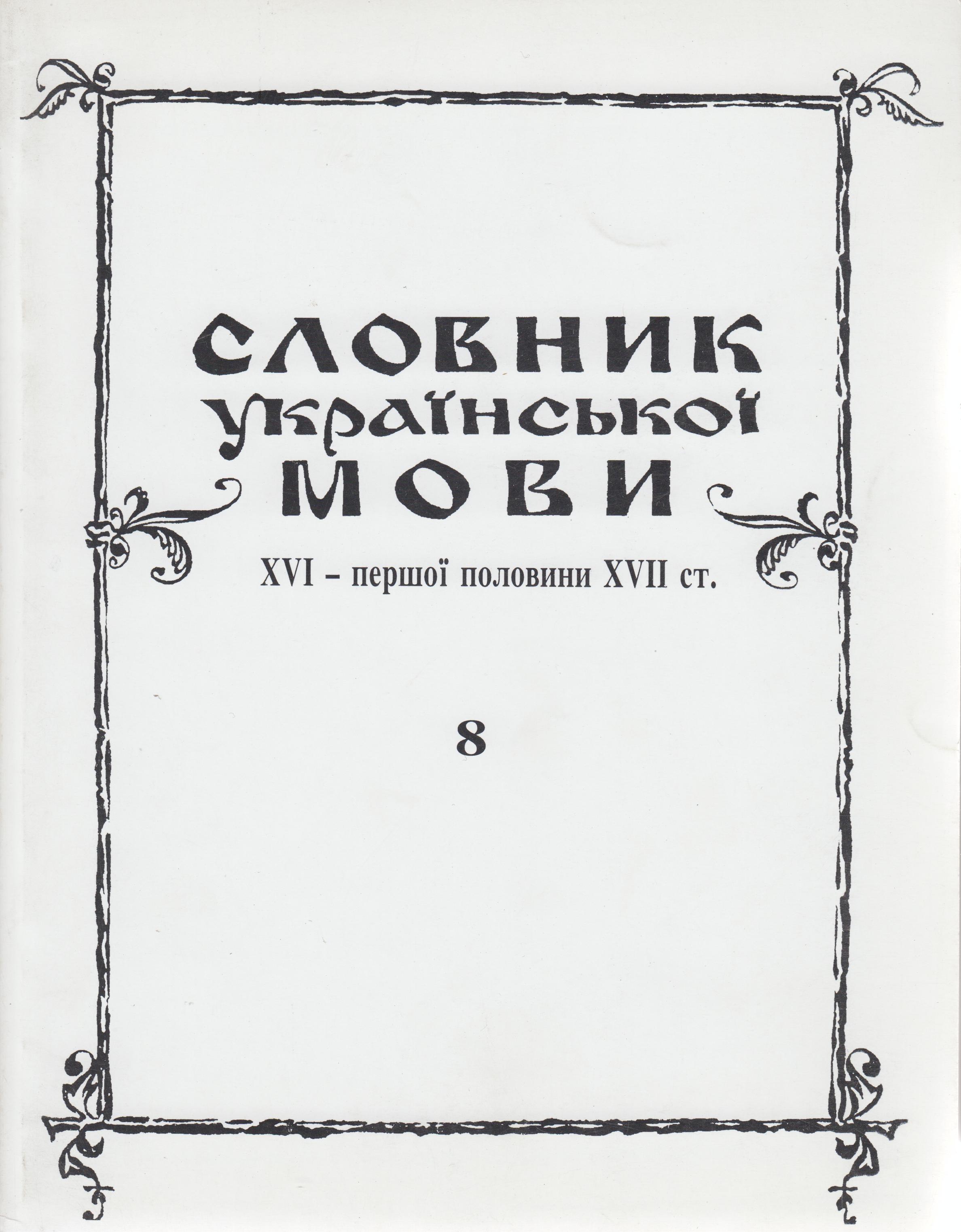 Словник української мови ХVІ – першої половини ХVІІ ст. / відп. ред. Д. Гринчишин; Інститут українознавства ім. І. Крип’якевича НАН України. Львів, 2001. Вип. 8 (десѧтинный – дѣдичство). 255 с.