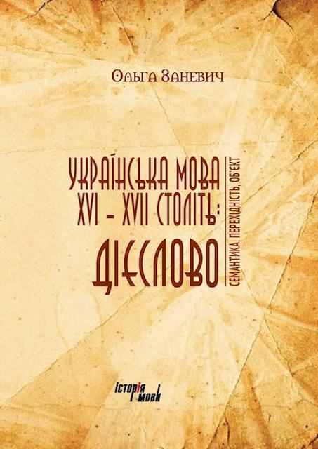 Українська мова XVI–XVII ст.: дієслово. Семантика, перехідність, об’єкт: монографія / Ольга Заневич. – Львів: Інститут українознавства ім. І. Крип’якевича НАН України, 2015 (Серія “Історія мови”). – 308 с.