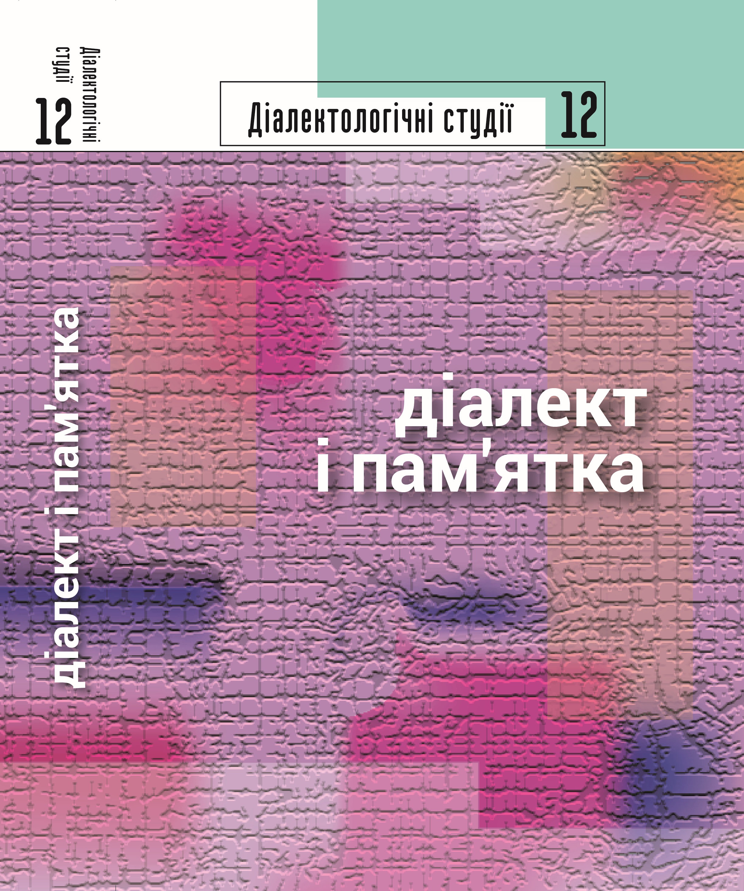 Діалектологічні студії. 12: Діалект і пам’ятка / відп. ред. П. Гриценко, Н. Хобзей; Інститут українознавства ім. І. Крип’якевича НАН України. Львів, 2019. 598 с.