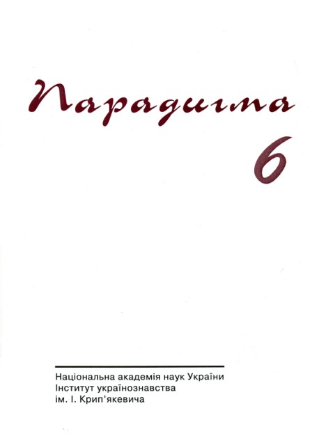 Парадигма. Збірник наукових праць. Випуск 6. - Львів: Інститут українознавства ім. І.Крип'якевича НАН України, 2011. - 296 с.